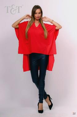 Másik tunikának egy élénk, piros darabot ajánlunk. A T&T Dolly oldalt bevágott lepkeujjú tunika különleges a színe és a lepke fazonú ujja miatt. Csak hátul hosszabbított, így ruhaként nem hordható, de farmerrel kiváló összeállítás.
