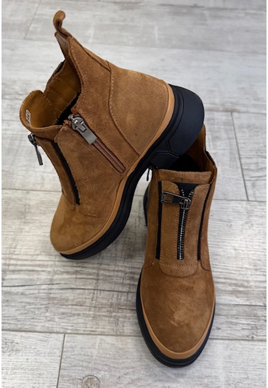 Via Roma bőr bokacsizma, teve barna színben, belül cipzáras, elöl is állítható cipzárral, alatta gumi betéttel.vékonyan bélelt. |
