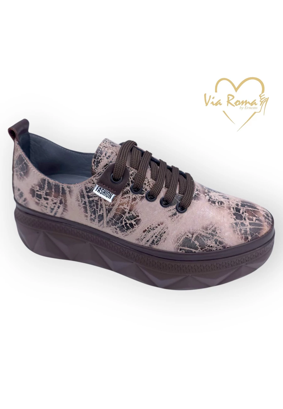 | Via Roma bőrcipő, rózsaszín csokibarna színben, fűzős, belső talprésze is bőr. | |