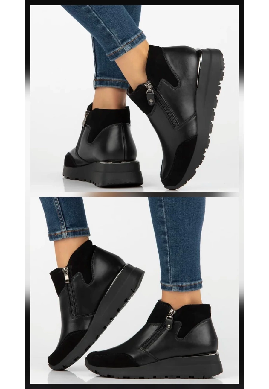 | Via Roma magas szárú bőrcipő, vékonyan bélelt szövettel, mindkét oldalán lehúzható cipzárral. | |