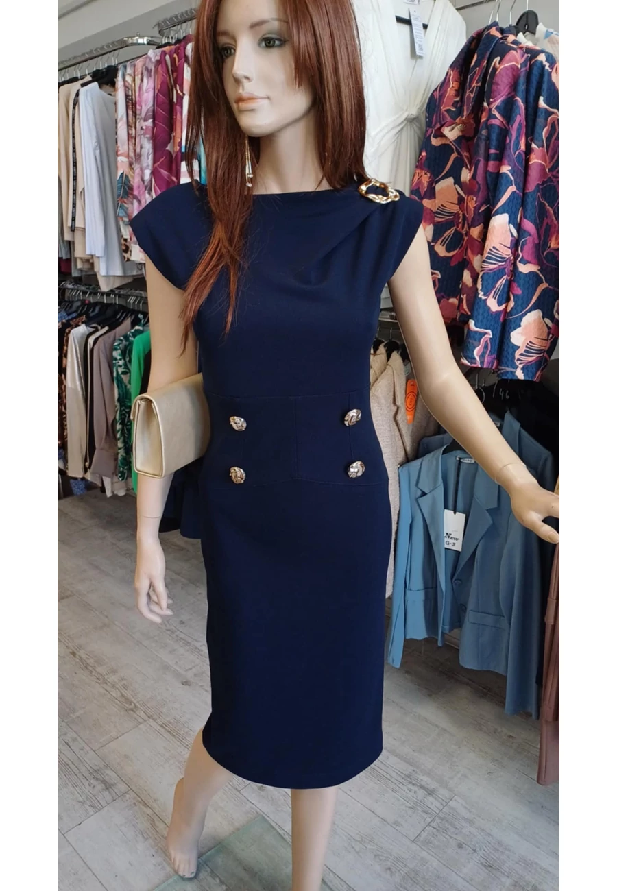 | Elegáns, testhez álló, válltöméses, hátul cipzáras ruha, térdig vagy térd alá érő. | |